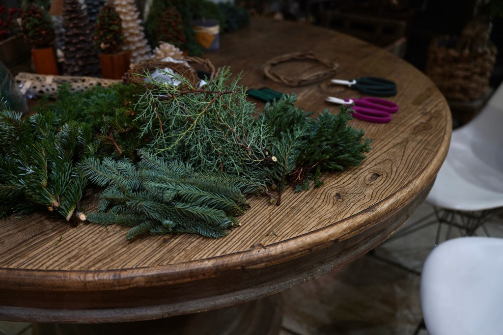 クリスマスリースのワークショップ。